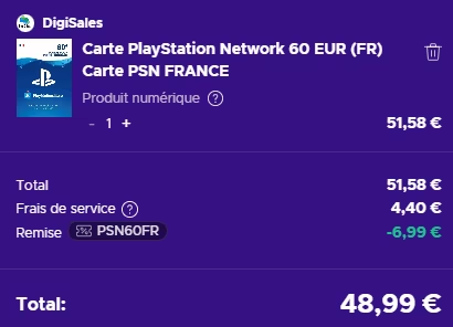 Ajoutez le code PSN60FR dans la case 'Vous avez un bon de réduction' (se mettre en mode paysage sur mobile pour trouver plus facilement la case !)